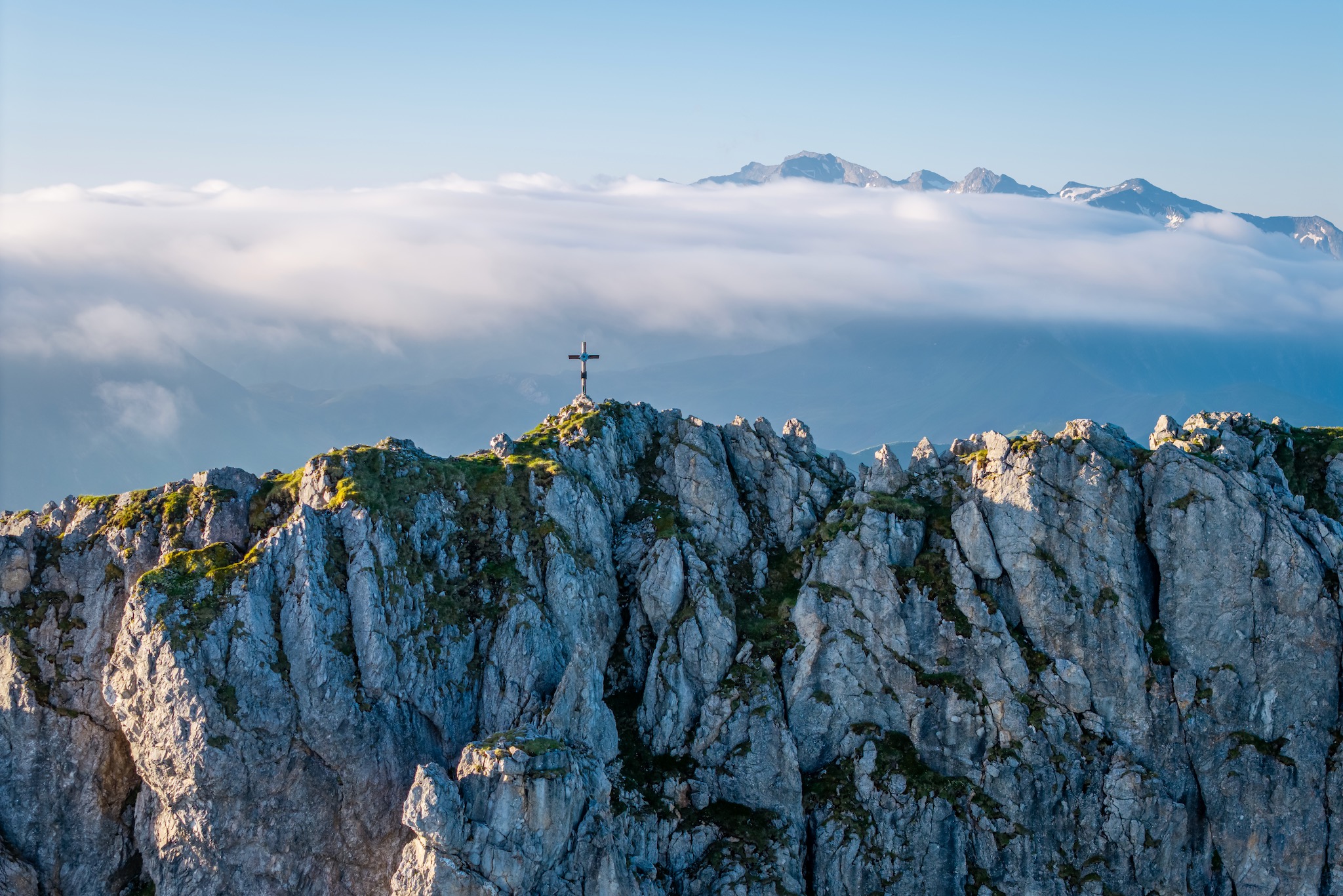 Die Höllwand liegt zwischen Schuhflicker und Heukareck und macht ihrem Namen alle Ehre. Der Grat ist zuletzt ausgesetzt, erfordert Trittsicherheit und Schwindelfreiheit – belohnt aber mit eindrucksvollen Tiefblicken. Wer die Runde komplett geht, sammelt gleich bis zu neun Gipfel- bzw. Wegkreuze.