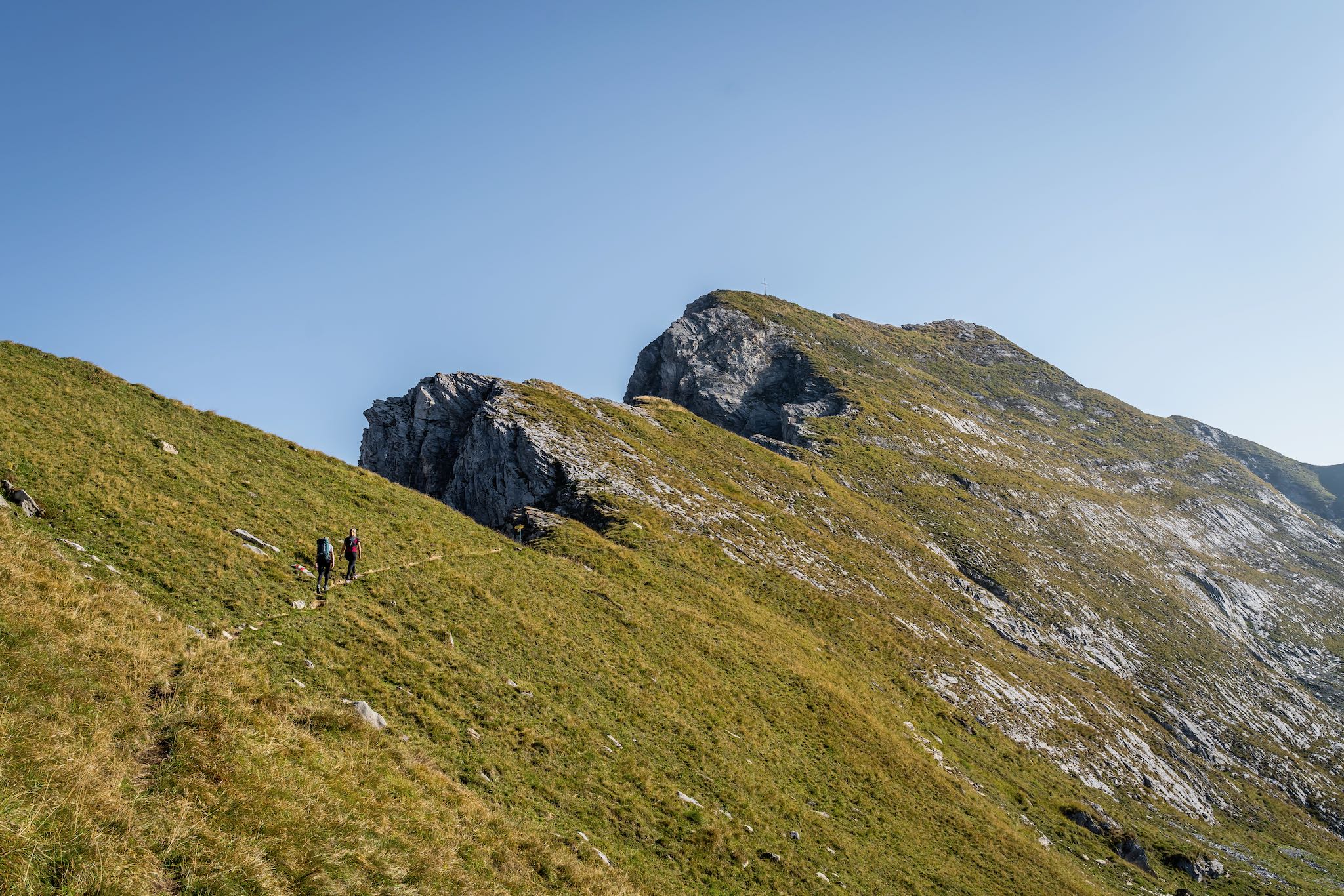 Das Gründegg ist ein ruhigerer Gipfel, der dennoch viel Abwechslung bietet. Schon der Zustieg über die Trögseen macht die Tour besonders, wenn sich die Natur im Wasser spiegelt. Der breite Kamm zum Gipfel sorgt für weite Blicke. Ideal im Herbst, wenn die Lärchen orangefarben leuchten.