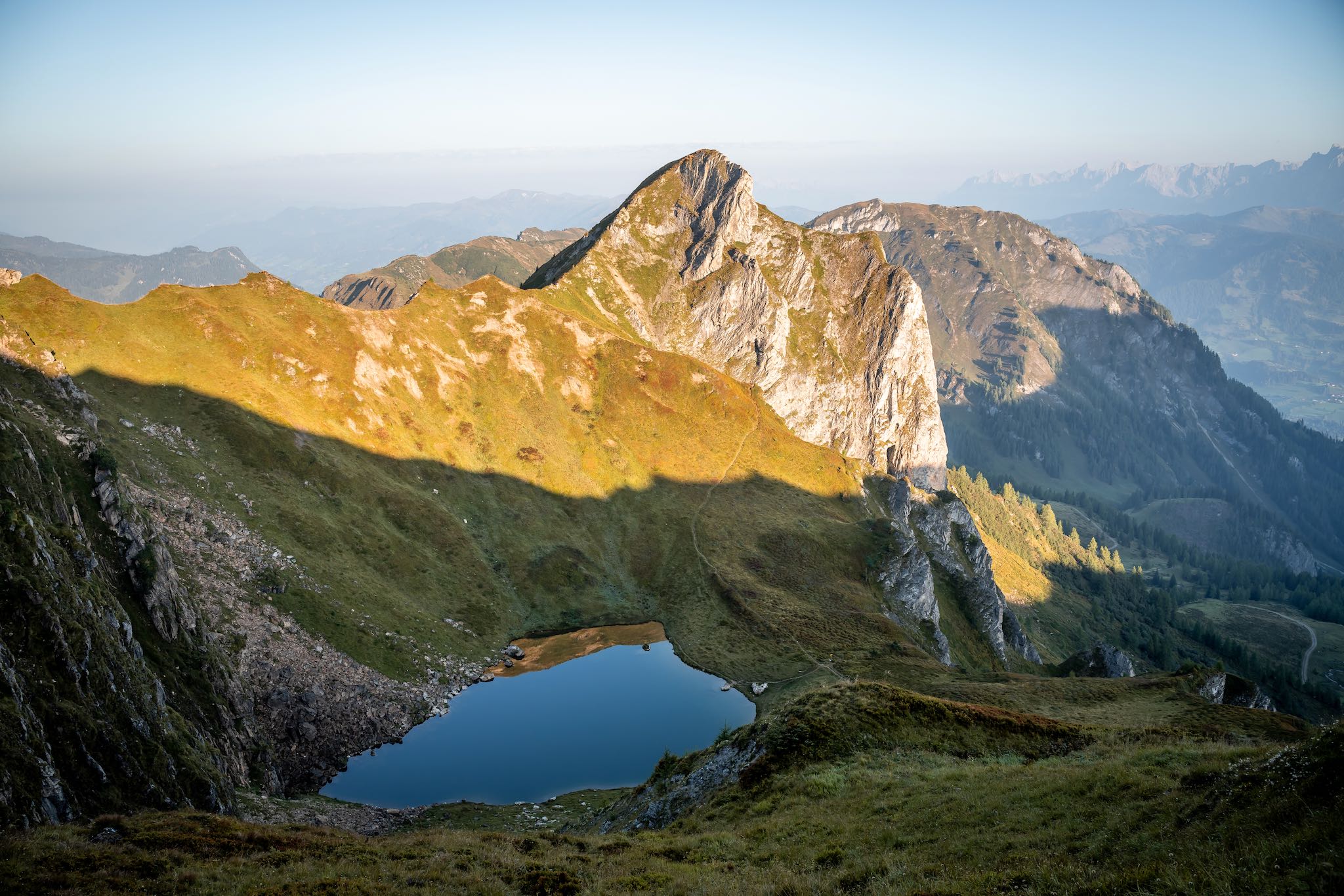 Der Kitzstein ist kein Riese, aber ein markanter Gipfel im Nordosten des Großarltals. Der Aufstieg führt zwischendrin steil über Almgelände und in den letzten Metern über einen kurzen, gesicherten Steig. Besonders stimmungsvoll ist der Gipfel in den frühen Morgenstunden, wenn die Sonne hinter dem Dachsteingebirge aufgeht.