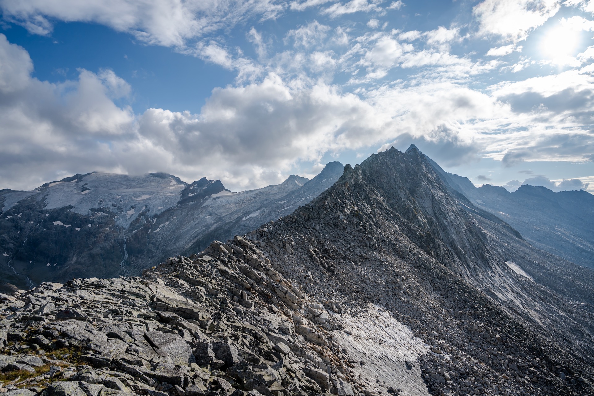 - Keeskogel (2.884 m): Aufstieg vom Biwak über den Nordgrat, leichte Kletterei (I, kurz II), ca. 1,5 Stunden.