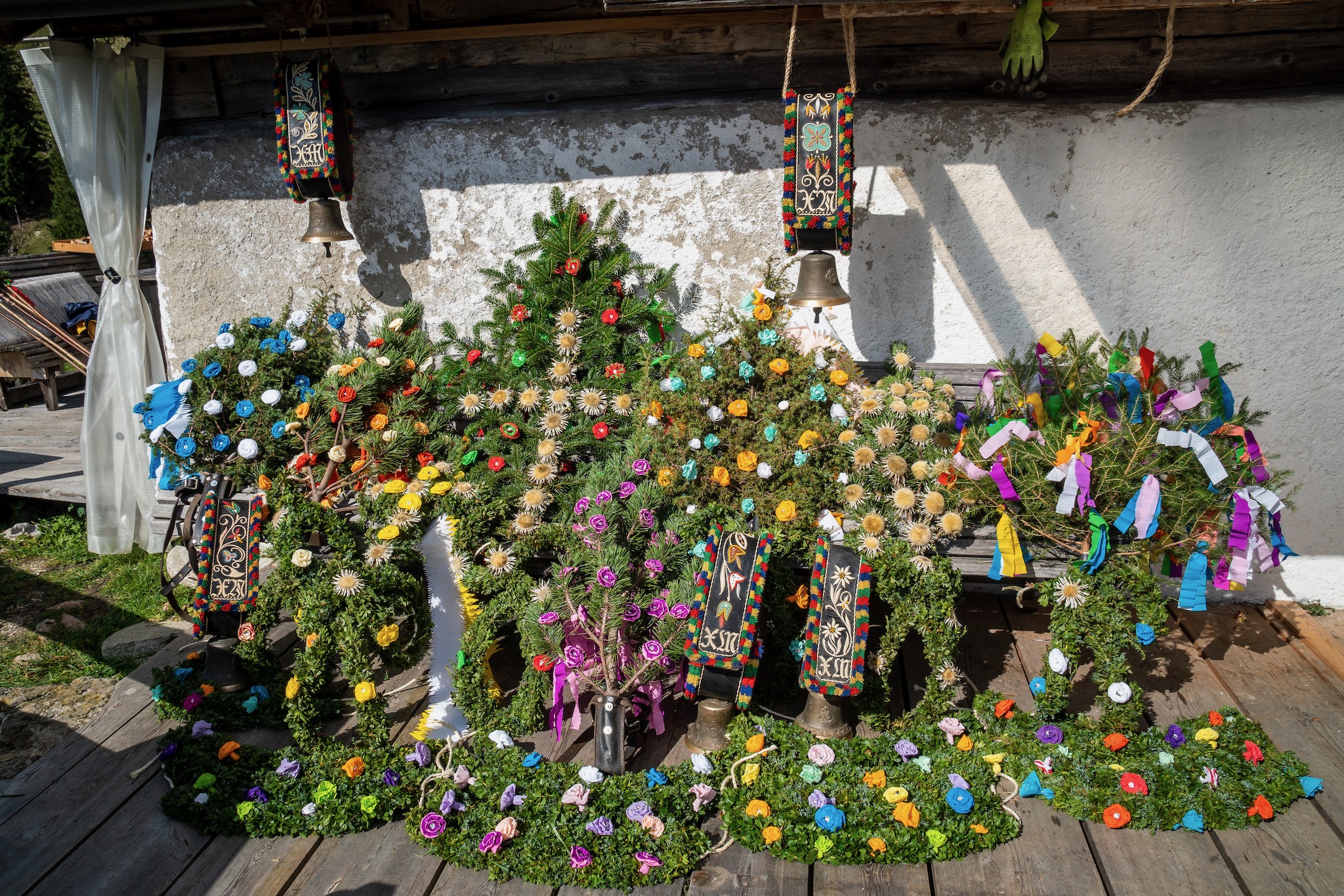 Die Kühe sind oft mit aufwändig gestalteten Kränzen und bunten Bändern geschmückt, wenn sie ins Tal zurück kommen. Kommt es während des Almsommers zu Unfällen bei Vieh oder Mensch verzichten die Bauern auf das Schmücken der Tiere, um der Trauer über den Verlust Ausdruck zu verleihen.