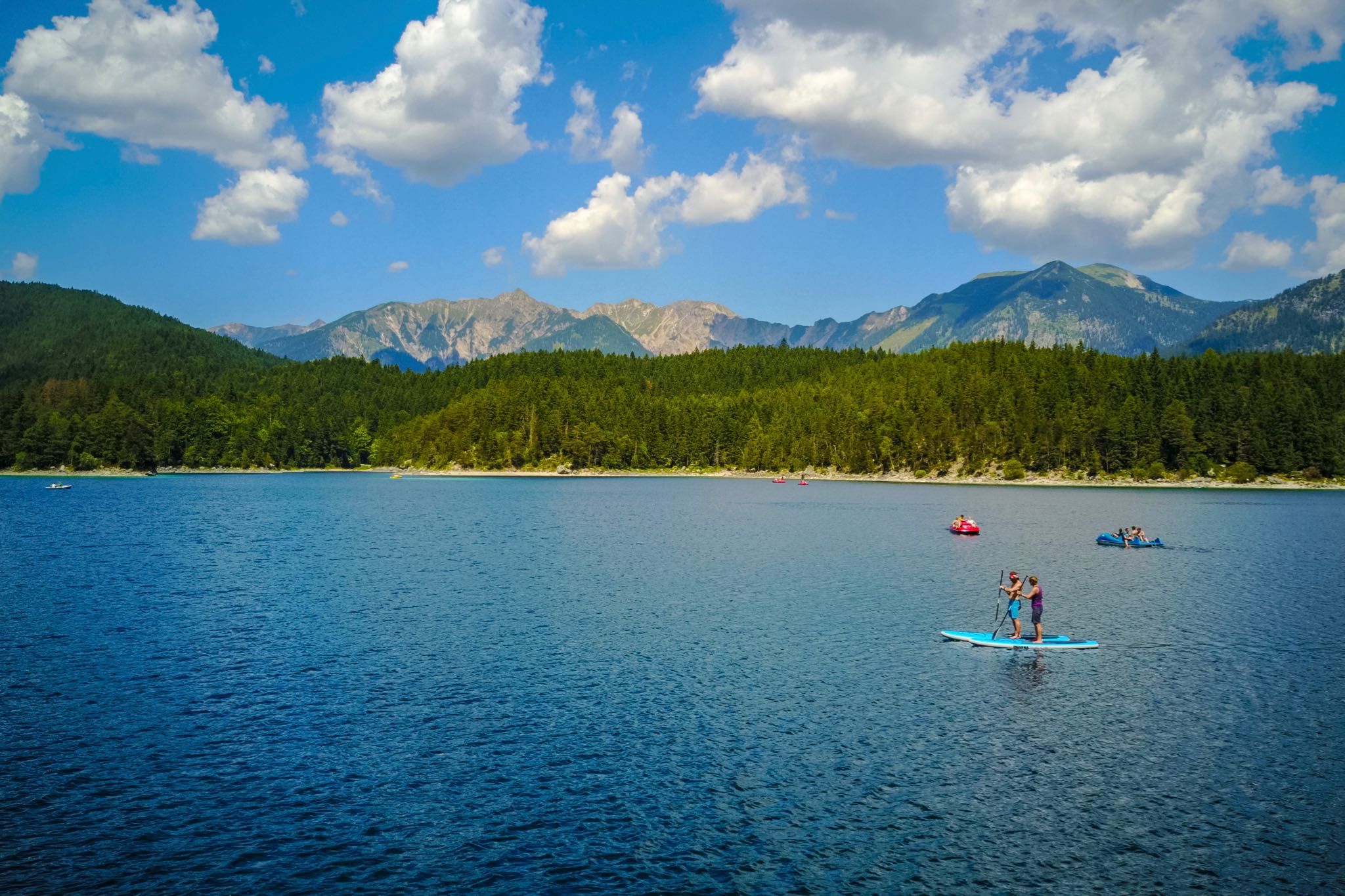 Am anderen Ende des Wettersteingebirges und am Fuß der Zugspitze wartet die bayerische Karibik auf tollkühne Schwimmer. Mit dem Walchensee gibt es ganz in der Nähe noch einen See, der quasi das gleiche von sich behauptet. Aber warum eigentlich Karibik? Ganz einfach. Der Eibsee leuchtet an seinen Ufern in einem türkisen Farbton, um den ihn selbst die Karibik beneiden würde.