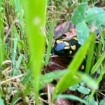 Während der Alpensalamander eine schmalere Statur und vollkommen schwarz ist, ist der Feuersalamander kräftigerer Natur. Und mit seinen großen gelb-leuchtenden Flecken auf schwarzem Grund fällt er umso mehr auf.