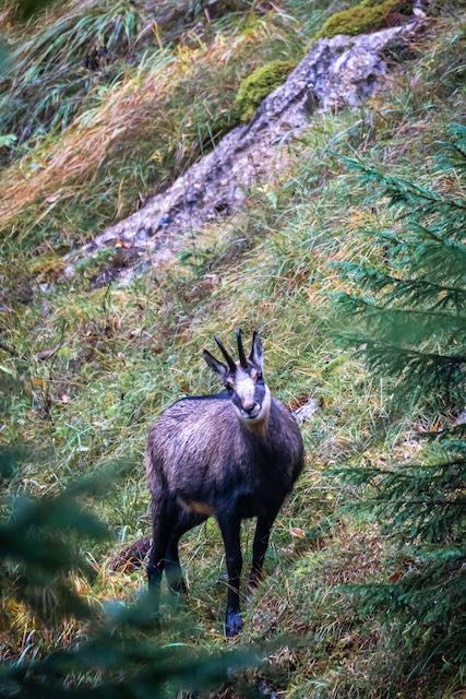 Gämsen sind allerdings deutlich scheuer als Steinböcke und flüchten oft, sobald sie Wanderer antreffen.