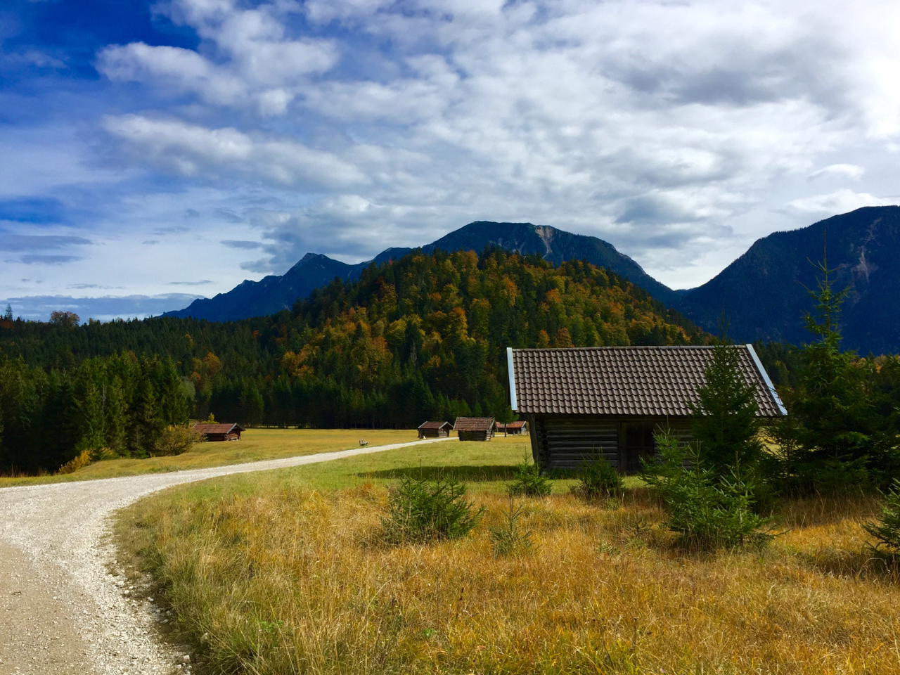 Um ein paar Höhenmeter und ein bisschen Zeit zu sparen, starte ich am Pflegersee oberhalb von Garmisch am Fuß des Königsstands. Die Forststraße ist nicht zu verfehlen, der bis zur Ennginalm gefolgt wird. Zunächst führt die ohne große Höhengewinne in das Tal hinein, wobei es bei der Gabelung nicht geradeaus, sondern nach rechts geht. Kurz steil hinauf und ein paar Höhenmeter hinab zu den Reschbergwiesen, hier links und an der nächsten Gabelung wieder links. Nun kann man nichts mehr falsch machen. Stetig bis auf kurze Stücke geht es bergauf, meist moderat steil, zwischendrin auch etwas fordernder, nähert man sich dem ersten Etappenziel.
