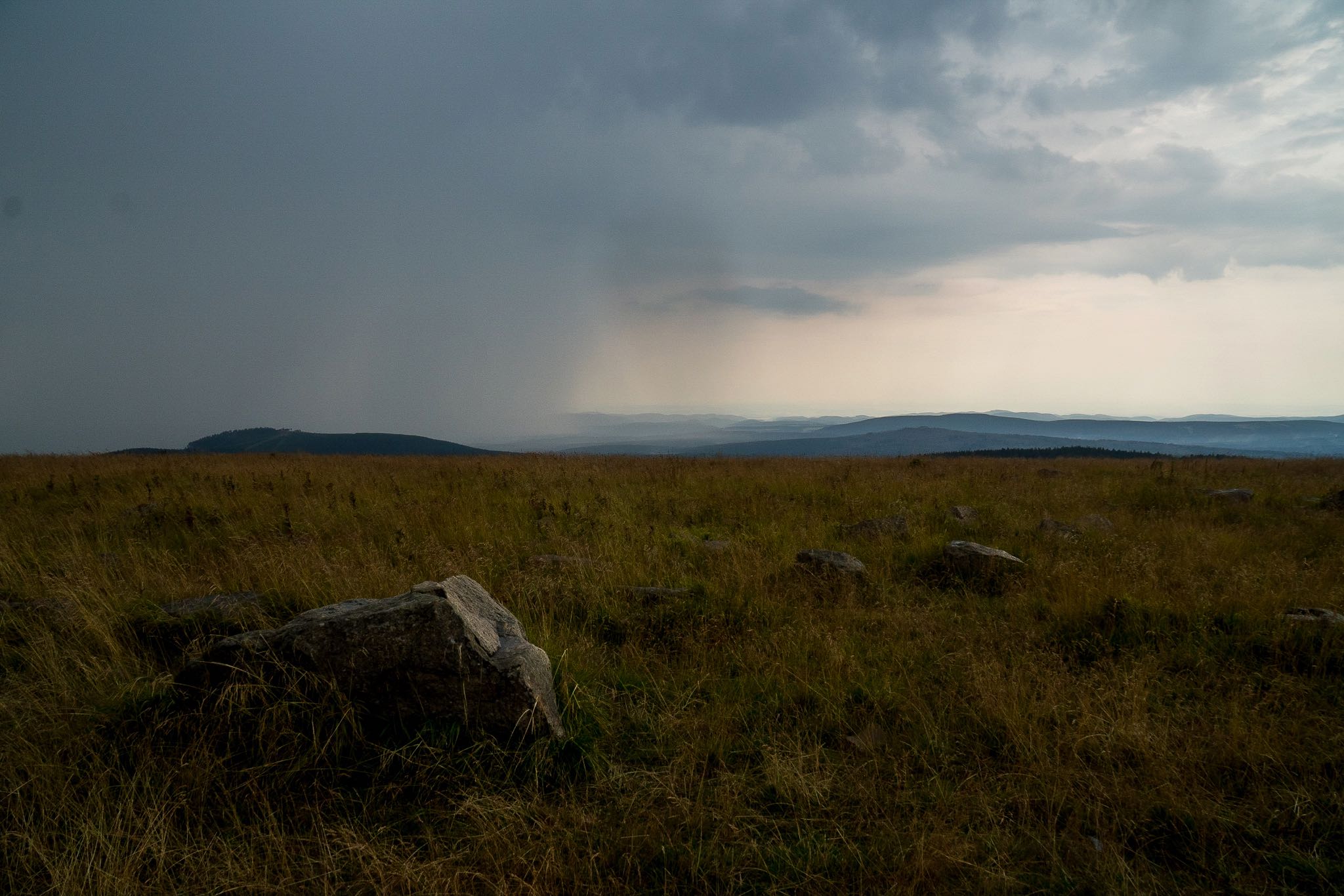 Während wir die Brockenbahn passieren, auf das richtige Fotomotiv warten, passiert es. Ein erstes Donnern kündigt das Gewitter an, das schließlich in rasender Eile den Gipfel erreicht. Sturzbäche donnern die letzten Aufstiegsmeter nach unten. Im Gipfelturm schlägt ein Blitz ein, während wir versuchen, so schnell wie möglich ins trockene Innere zu gelangen.