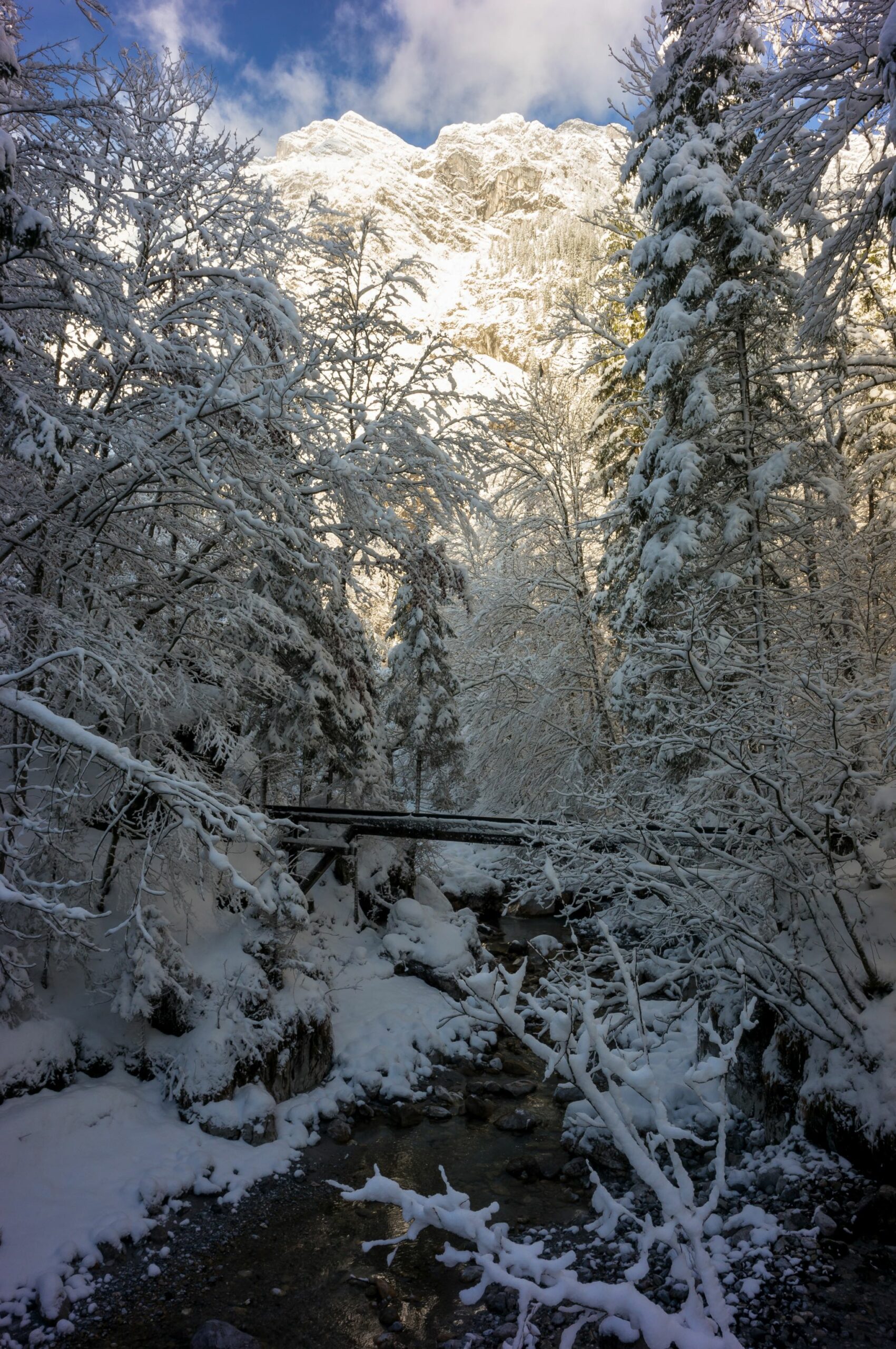 Die Sonne schafft es über zwei Jahrhunderte später Ende Dezember gerade so über das Steinerne Meer, den riesigen Ausläufer im Süden der Berchtesgadener Alpen. Ihre Strahlen tauchen die frisch verschneite Winterlandschaft in ein grell glänzendes, an allen Ecken und Enden funkelndes Licht. Sobald wir auf dem Weg zur Eiskapelle den Eisgraben betreten, ist von ihrer Strahlkraft aber nichts mehr übrig, denn an den kürzesten Tagen des Jahres schafft es die Sonne hier gar nicht mehr hin.