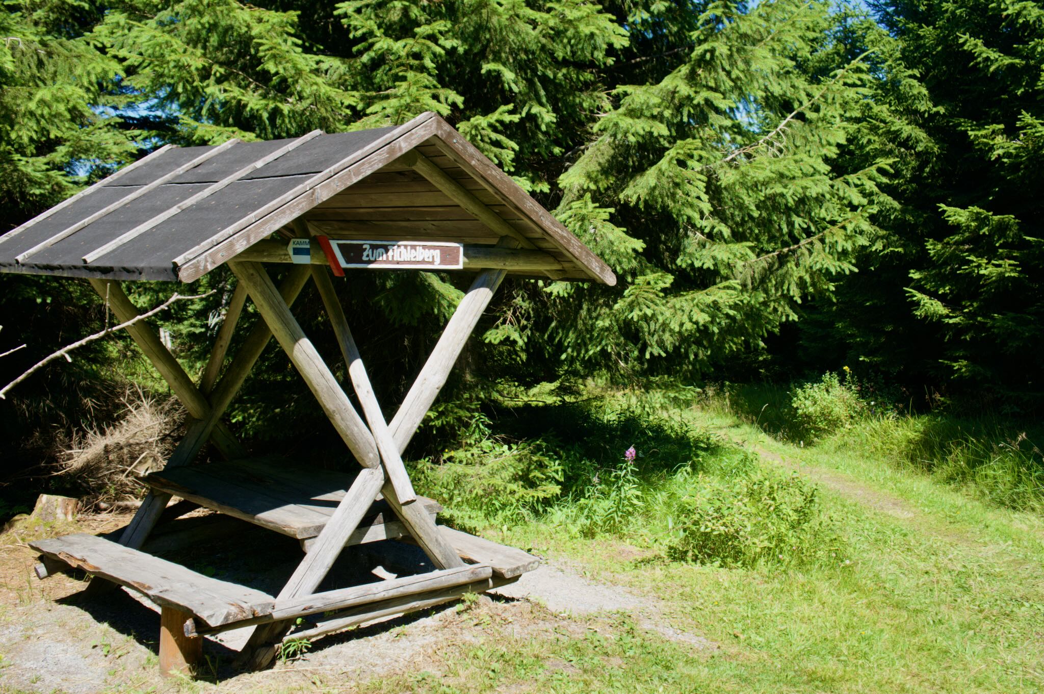 Unsere Wanderung auf den Fichtelberg, übrigens weder verwandt noch verschwägert mit dem Fichtelgebirge im Nordosten Bayerns, beginnen wir direkt am Hotel von Jens Weißflog im Kurort Oberwiesenthal nicht auf möglichst direktem Wege, sondern zunächst wandern wir ohne großartig Höhenmeter zu gewinnen oberhalb der kleinen Stadt am Fuß von Sachsens höchstem Berg entlang.