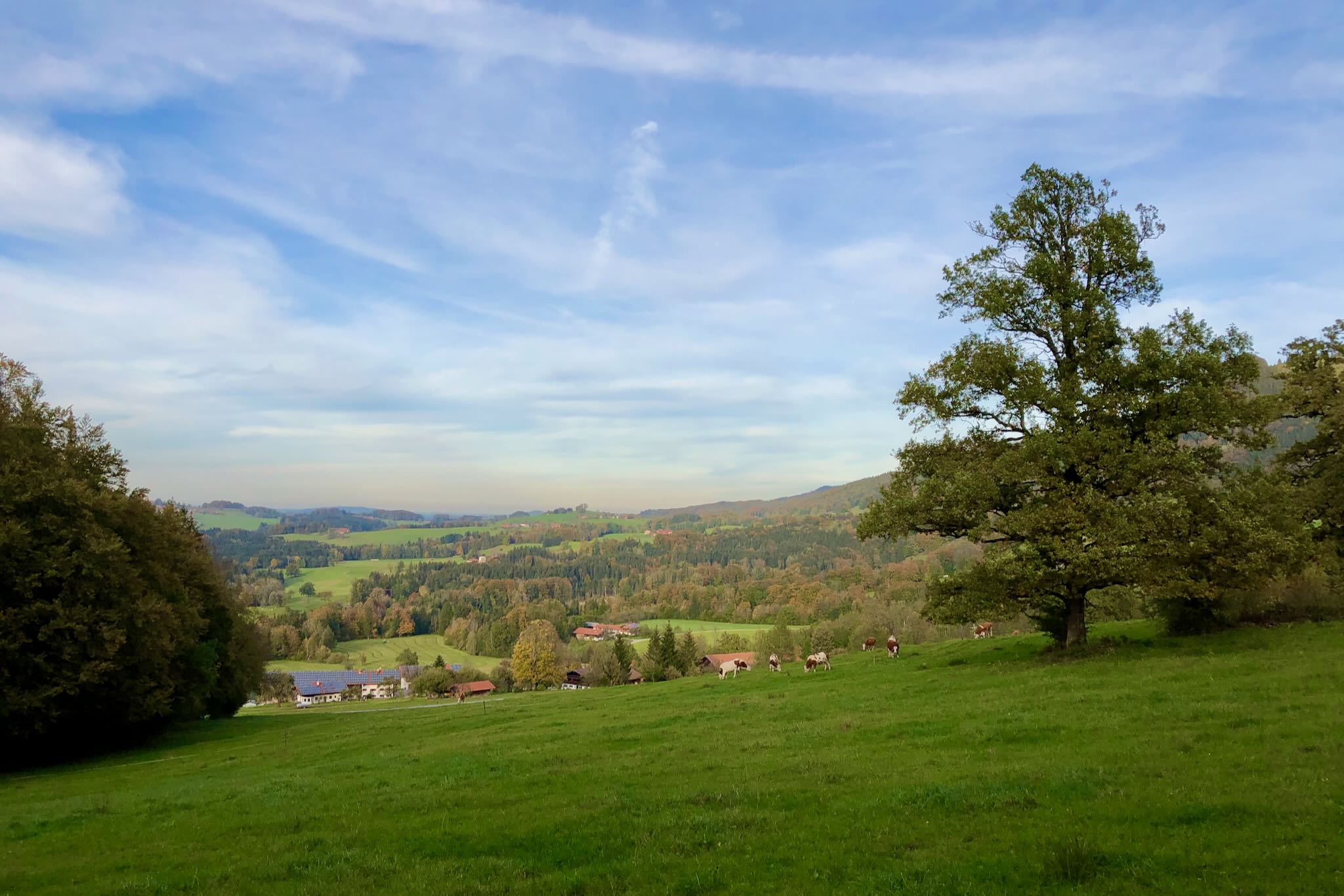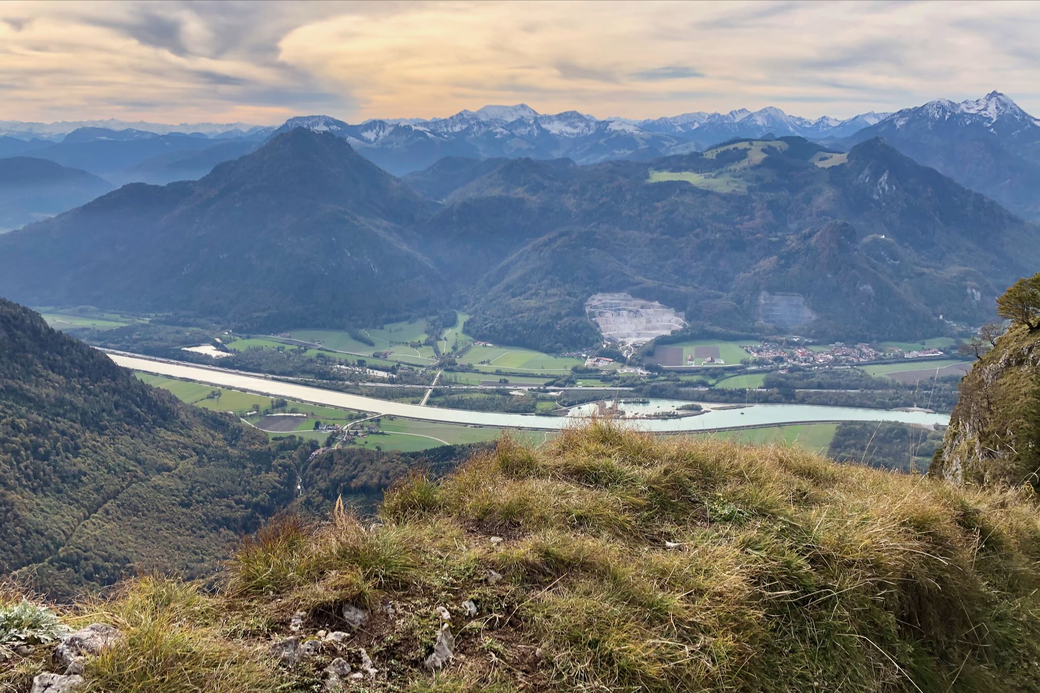Die Bäume leuchten in den buntesten Farben. Die Luft ist klar und der Chiemsee wirkt als wäre er nur einen Steinwurf entfernt. Die Stille hier oben wird nur durch die Blechlawine gestört, die sich Tag ein, Tag aus durch das Inntal hinab und hinauf bewegt.