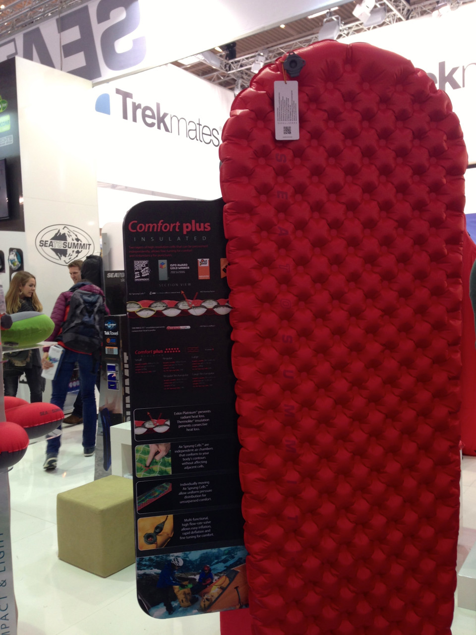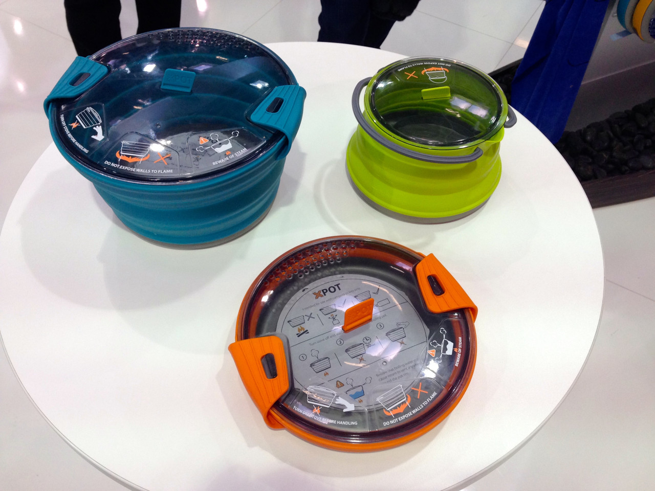 Interessante Luftmatratzen mit und ohne Füllung gab es am Stand von Sea to Summit zu bestaunen. Und noch ein Highlight am gleichen Stand: Die Kochtöpfe mit dem wohlklingenden Namen X-Pot. Die bestehen aus einem zusammenfaltbaren Silikonmaterial und haben am Boden eine feuerfeste Alu-Platte für den Einsatz auf den gängigen Kochern. Das macht sie extrem leicht bei einem sehr kleinen Packmaß. Im Spätsommer ist die gesamte Sparte auch in Deutschland erhältlich.