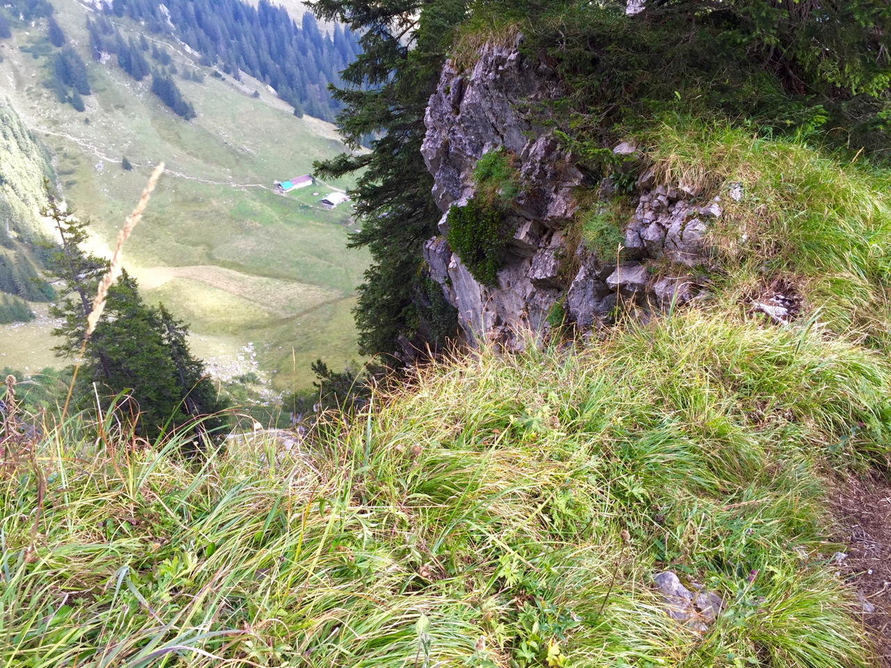 Hier hat man die Qual der Wahl: Rechts geht es über einen namenlosen Bergkamm mehr oder weniger direkt zu den Wilden Fräulein. Links geht`s zur Hütte der Jägerbauernalm, wo die nächste Wahl wartet? Ohne den Jägerkamp zu den Wilden Fräulein oder mit dem Jägerkamp zu den Wilden Fräulein.