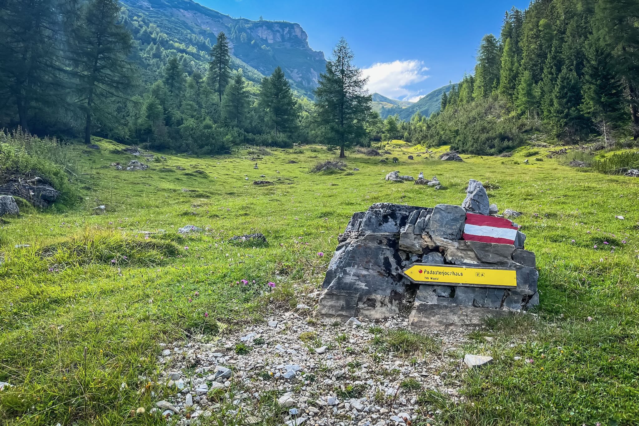 Wir folgen aber den wenigen Markierungen gen Trins und finden uns irgendwann auch wieder auf dem Aufstiegsweg wieder, auf dem es schließlich zurück ins Tal und zum Ausgangspunkt der Wanderung zum Padasterjochhaus und auf die Kesselspitze geht.