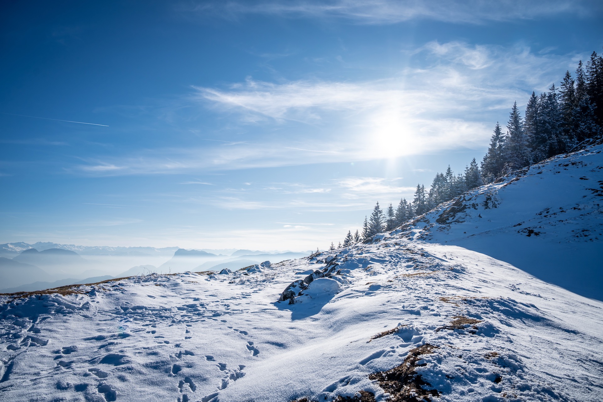 Die Wanderung auf das Kranzhorn ist eine weitestgehend einfache Tour in den Chiemgauer Alpen für das ganze Jahr. Besonders markant: Die Grenze zwischen Bayern und Tirol verläuft direkt über den 1.368 m hohen Gipfel, um den sich zahlreiche Mythen und Sagen drehen.