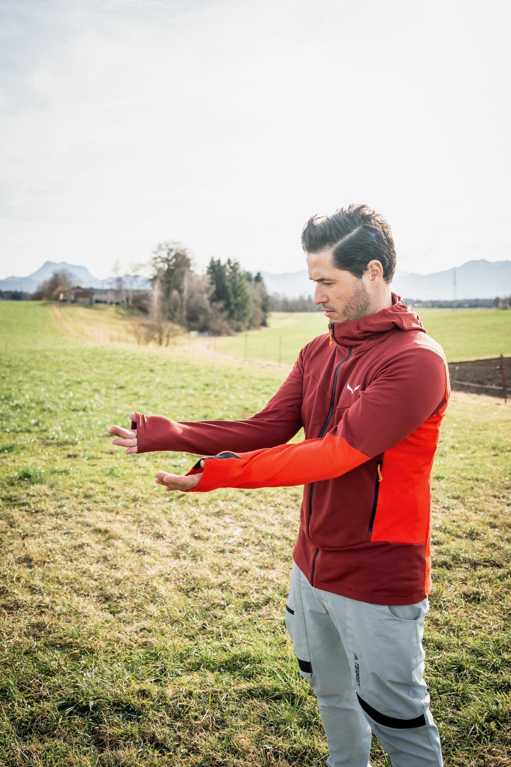 Bei der Skitour (oder anderen sportlichen Aktivitäten) rutscht die Jacke im Bauchbereich allerdings immer etwas nach oben, was auf Dauer ein wenig lästig ist. Anders als die Ärmelbündchen, denn die sitzen bei jedweder Bewegung dort, wo sie hingehören.