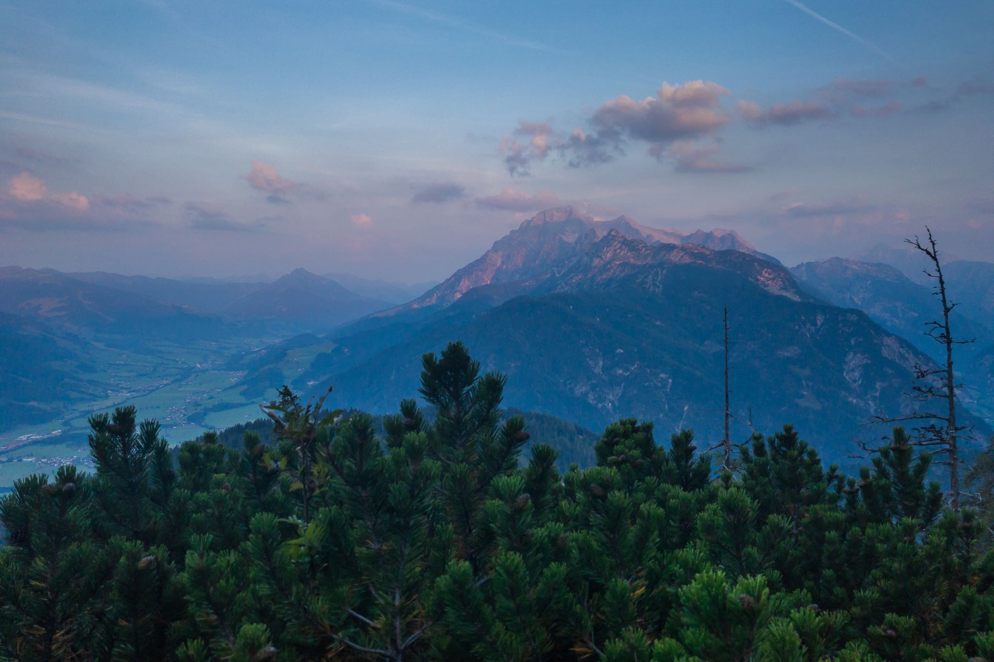 Bereits um 4 Uhr geht es mit verschlafenen Augen vor den Toren von Saalfelden am Steinernen Meer im Ortsteil Bachwinkl auf große Tour. Im Schein der Stirnlampen werden nach der kurzen Nacht schnell die ersten Höhenmeter zurückgelegt. Die Teilnehmer des Bergzeit Frischluft Kicks, die sich zu einem dreitägigen Abenteuer in Leogang getroffen haben, tun vor allem eins: Schweigen.