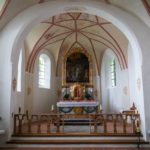 Nächstes Ziel ist die Schnappenkirche, die furchteinflößend steil über dem Achental zu thronen scheint. Winzig klein, kaum größer als eine Kapelle wie sie oft am Wegesrand stehen, wirkt sie von unten. Zu unserer Überraschung ist sie das nach dem langen, zum Glück gar nicht so steilen Aufstieg vorbei an der Burg Marquartstein und über Waldwege aber doch nicht. Wer wohl auf die Idee gekommen ist, gerade hier eine Kapelle zu errichten?