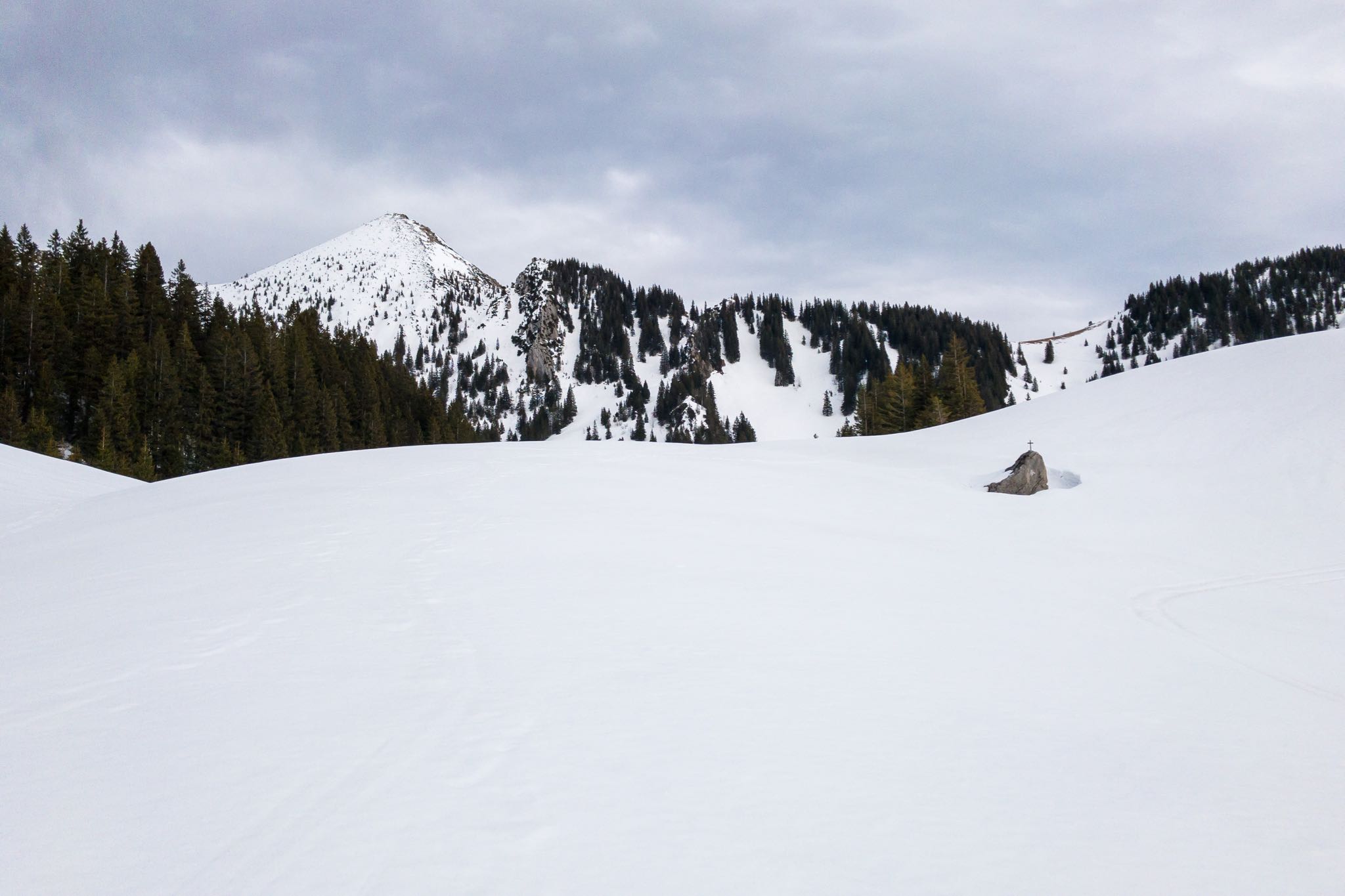 Der bekannteste ist wohl der Geigelstein, an dessen Fuß die Priener Hütte liegt. An schönen Wintertagen tummeln sich beinahe Heerscharen von Tourengehern an den Hängen des Chiemgauer Blumenbergs.