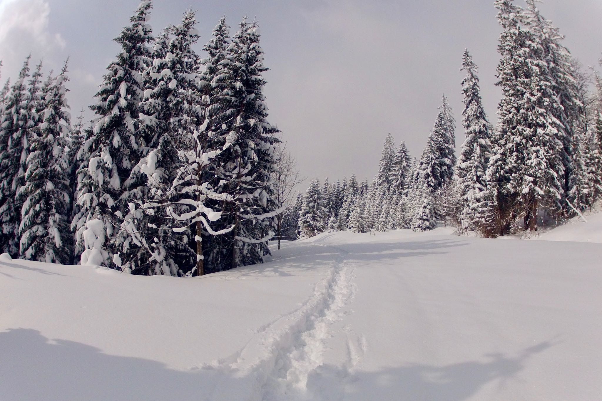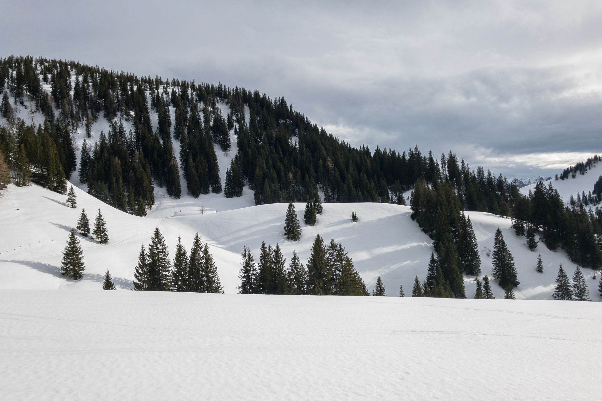 Unterhalb des Moosbergs, der zwischen 01.12. und 31.05. nicht betreten werden darf, geht es einfach bis zur Ackeralm, die im Winter allerdings nicht bewirtschaftet ist. Auch der Weiterweg zur ganzjährig bewirtschafteten Wandberghütte ist möglich.