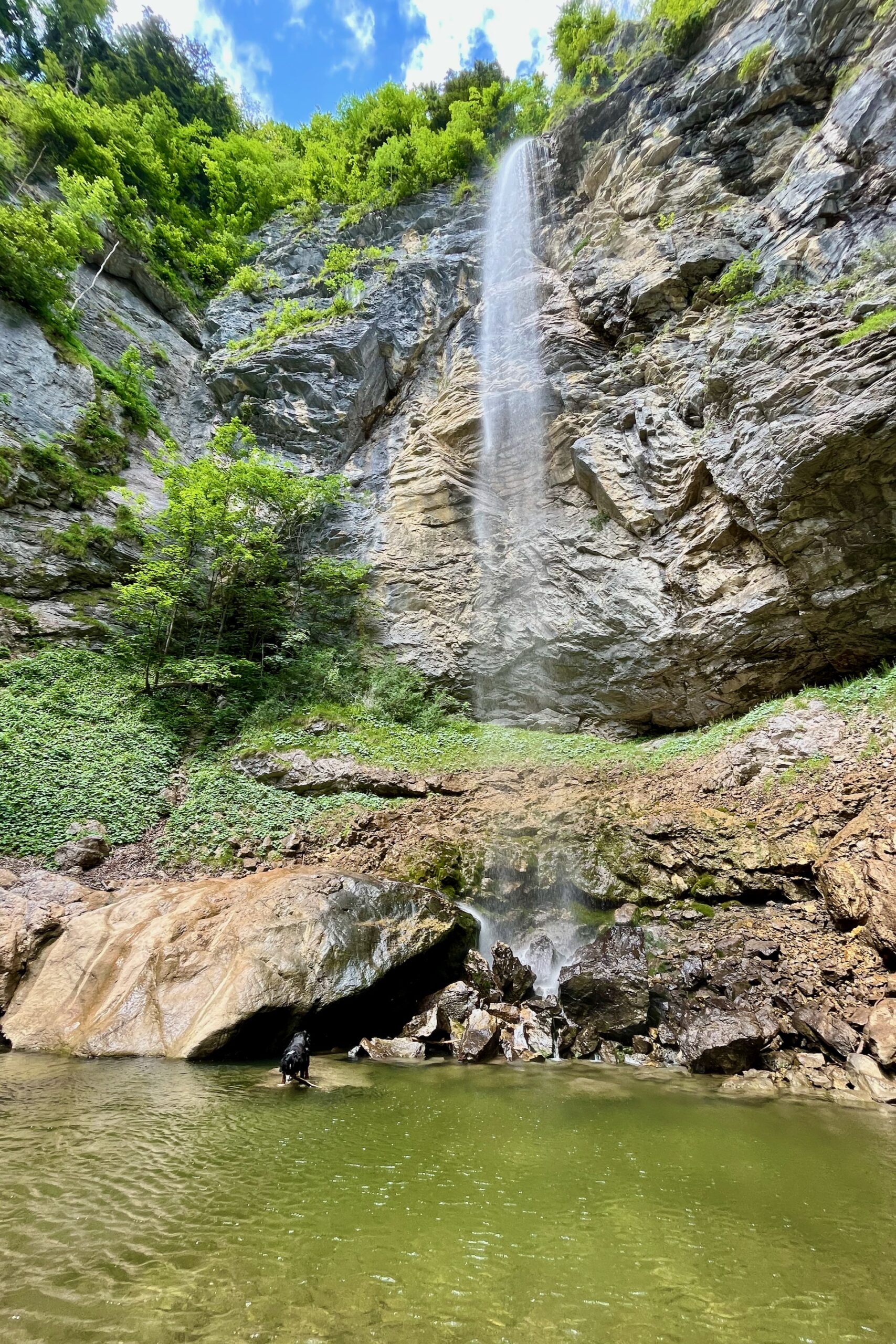 An heißen Sommertagen verwandelt sich das Becken bzw. die Gumpe direkt unterhalb der Schossrinn beinahe in eine Badewanne. Auch wenn das Wasser direkt von den Bergen kommt, so erwärmt es sich hier dank der Sonneneinstrahlung etwas und bietet eine tolle, wenngleich immer noch kalte Abkühlung.