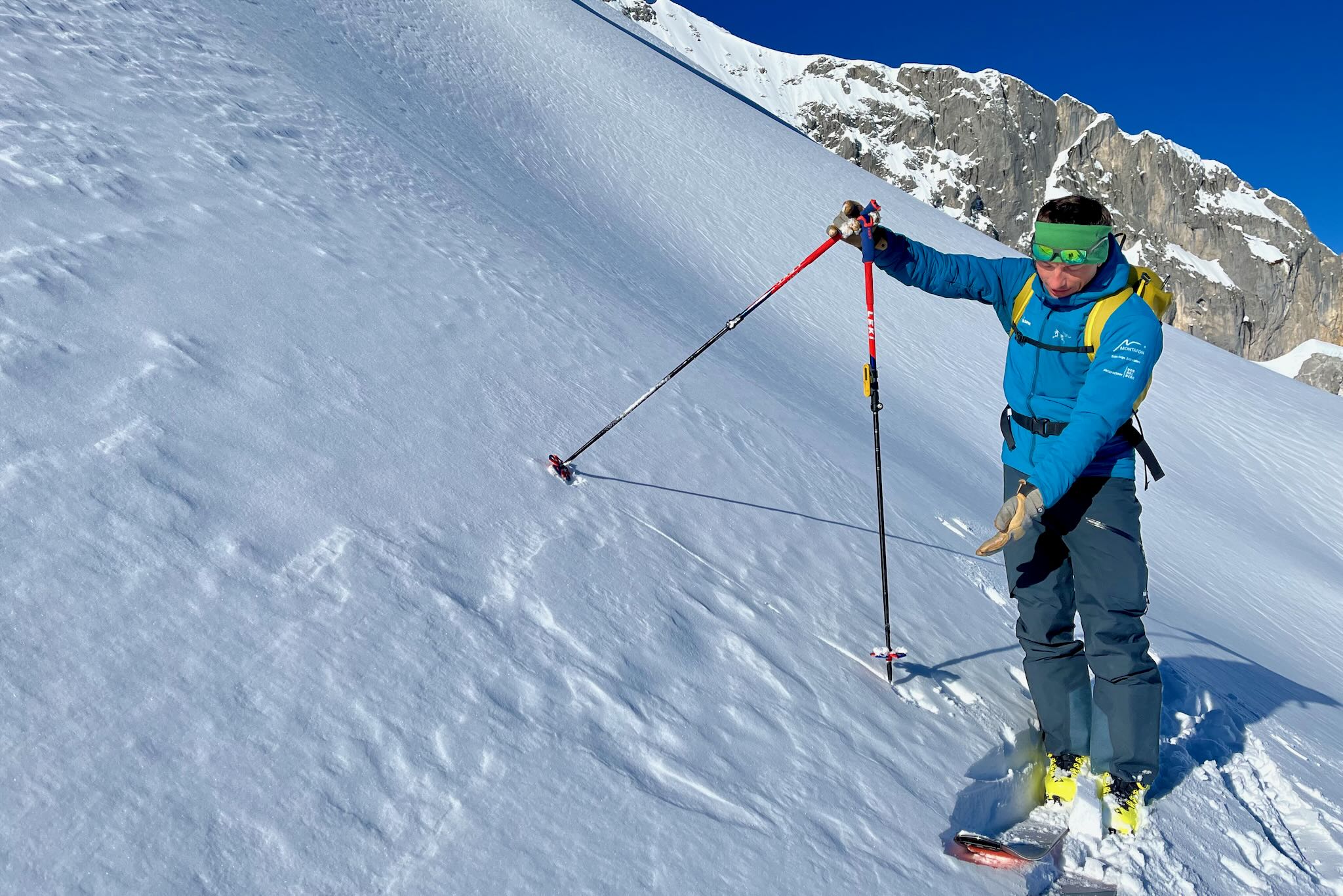 So funktioniert die Bestimmung der Steilheit mit den Skistöcken (sog. Stocktest):