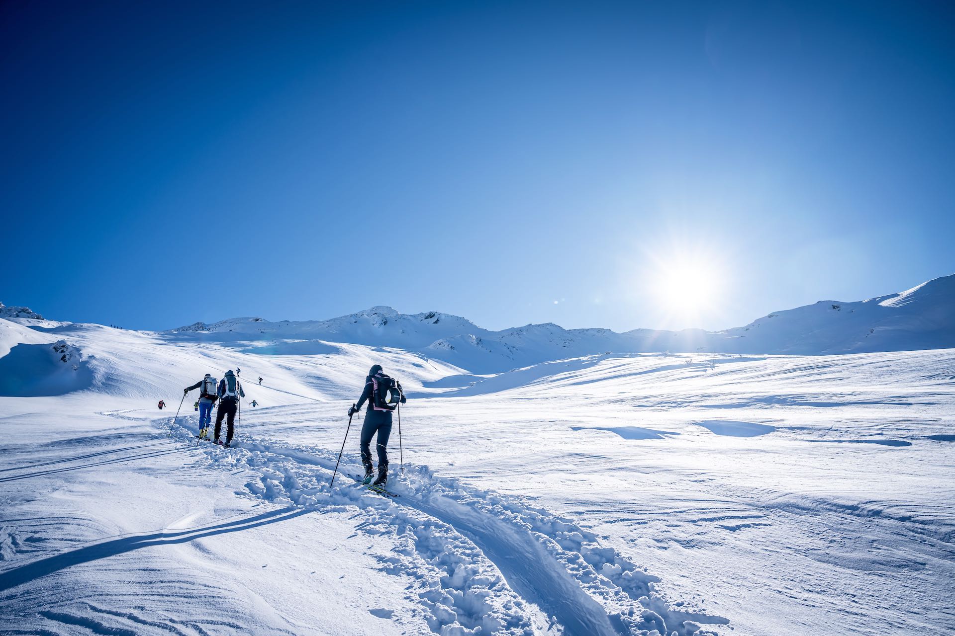 Die deutlich anspruchsvollere und viel längere Anita-Runde folgt zumindest am Anfang der gleichen Route. Von den Kreealmhütten geht`s auf dem Sommerweg in gerader Linie zum Murtörl und zum benachbarten Mureck, das bei der Anita-Runde aber erst den Anfang bildet. Weiter geht`s in Richtung der Schmalzscharte zu den Schwarzseen und auf den Weinschnabel. Nach der Abfahrt zum Kölnbreinspeicher folgt noch einmal der lange Aufstieg zum Keeskogel, von dem es schließlich zurück nach Hüttschlag geht. 3.250 Höhenmeter und knappe neun Stunden sind den ambitionierten Tourengehern vorbehalten.