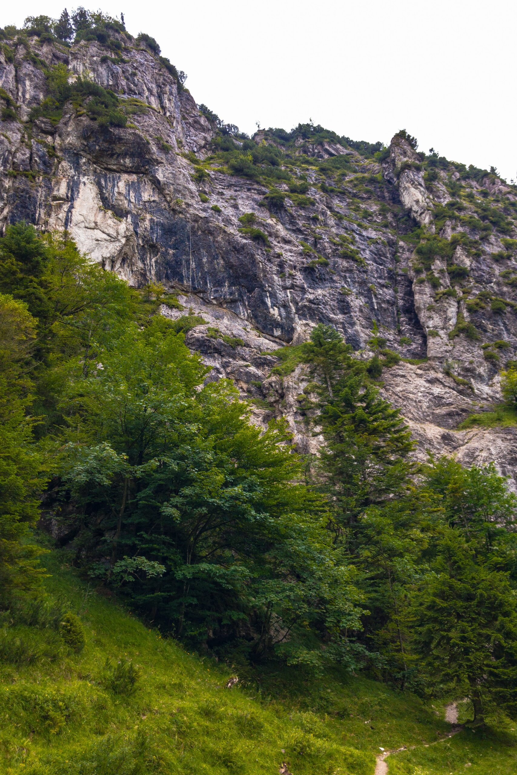 Durch eine Schlucht und an einem Wasserfall entlang, windet sich der Hausbachfall Klettersteig bei Reit im Winkl. Der ist eigentlich mit einem moderaten C bewertet, die Meinungen, ob diese Einordnung richtig ist, gehen aber auseinander.
