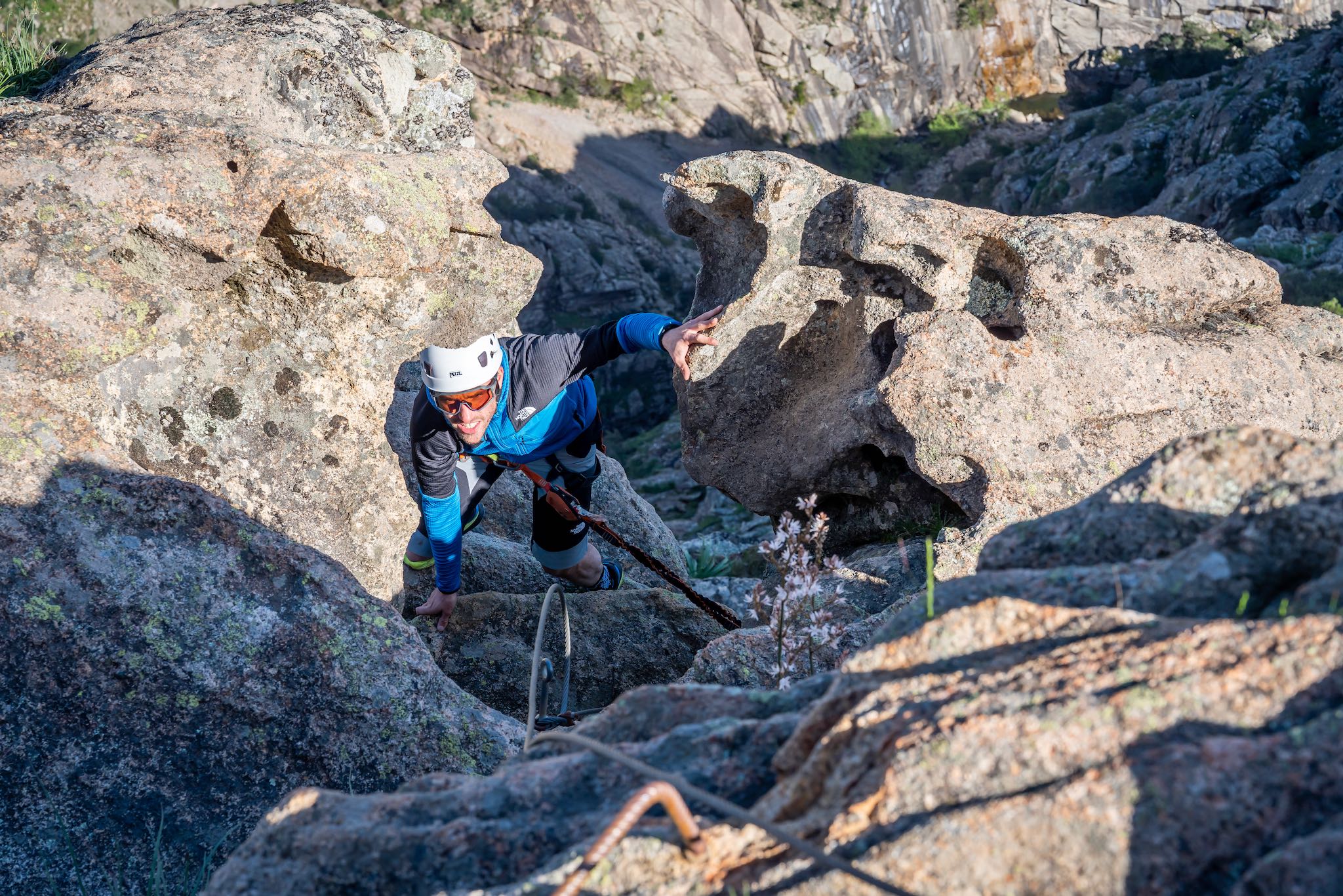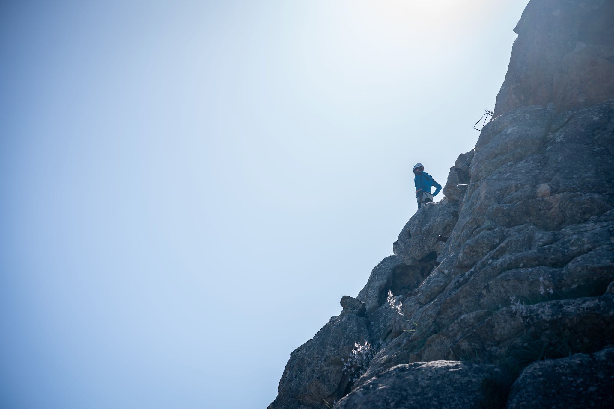 - Charakter: im ersten Teil leichter Klettersteig mit stahlseilversicherten Stellen (Schwierigkeit A); lange Zipline, für die Seilrolle benötigt wird (nur mit Guide); zweiter Teil des Klettersteigs beginnt sehr ausgesetzt und steil (Schwierigkeit: B/C); anschließend einfacheres Gelände mit guten Sicherungsmöglichkeiten und tollen Blicken zum Stausee; bei Höhenangst nicht geeignet