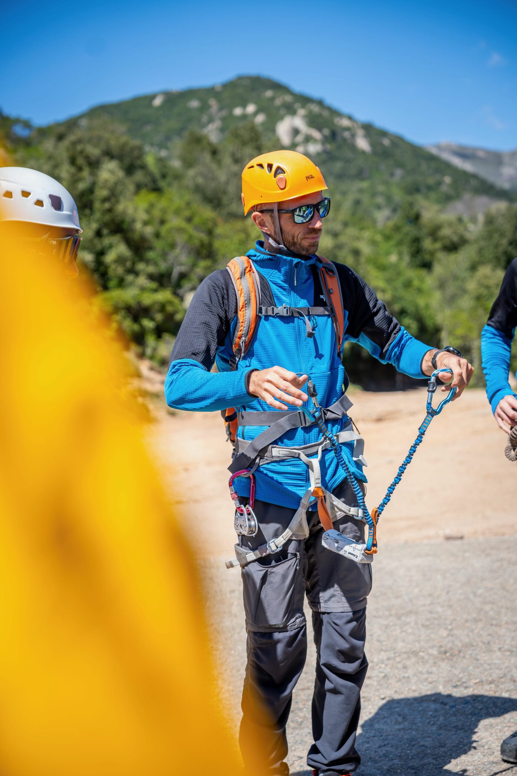 Wer ohne einen Guide im Via Ferrata de Tolla Klettersteig unterwegs ist, klettert vor der Zipline noch weiter in die Prunelli-Schlucht, überquert diese nicht ganz so spektakulär auf einer Seilbrücke, um anschließend etwas anspruchsvoller wieder aufzusteigen bis beide Varianten wieder zusammentreffen.