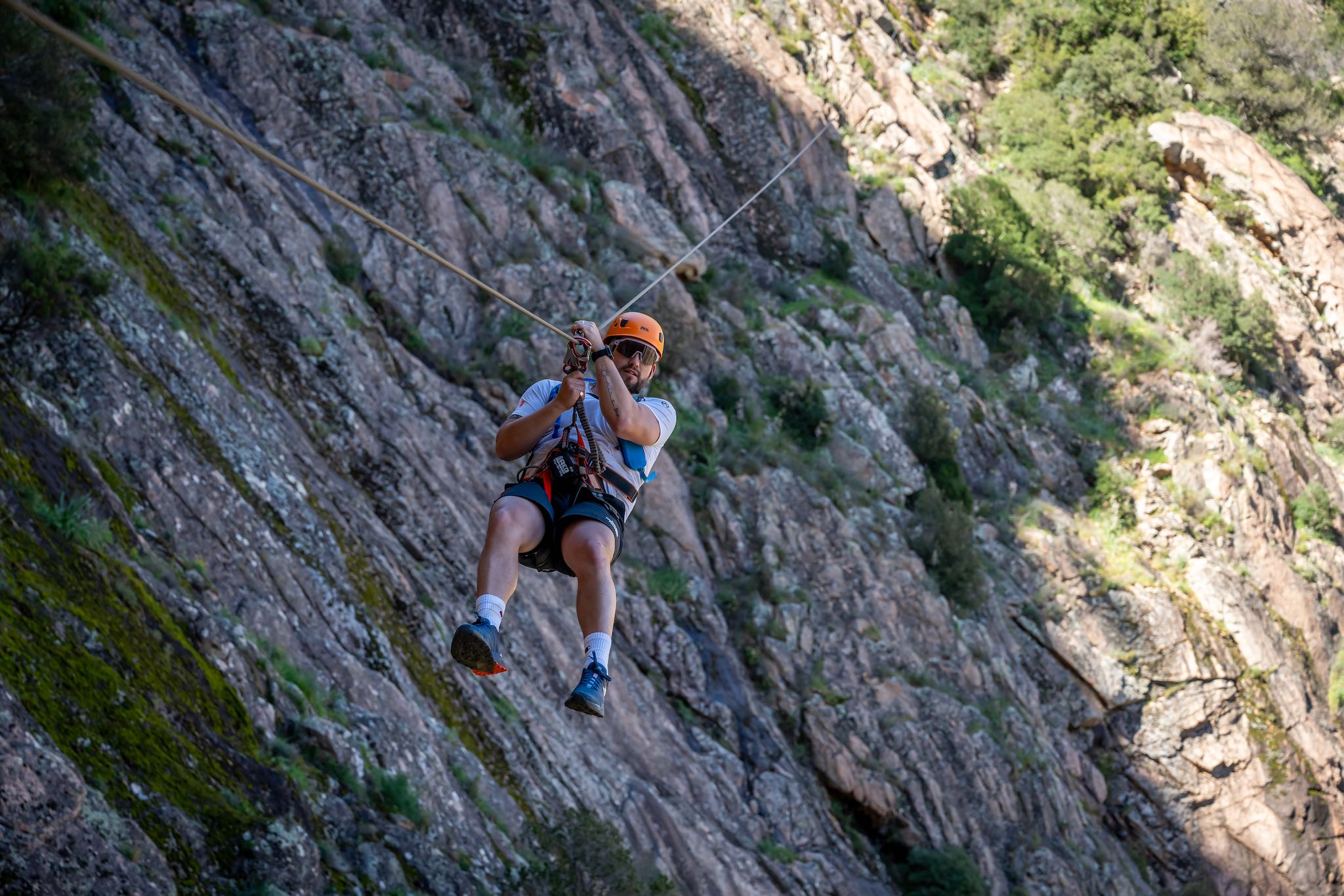 Die Tour durch den Via Ferrata de Tolla Klettersteig ist in zwei Varianten möglich. Die längere Variante führt vom Einstieg sehr tief hinab in die Prunelli-Schlucht und lässt die Zipline, die nur zusammen mit einem Guide genutzt werden darf, außen vor. Etwas kurzweiliger ist der Tolla Klettersteig mit der Zipline, die auf einer Länge von fast 100 Metern spektakulär über die Schlucht führt.