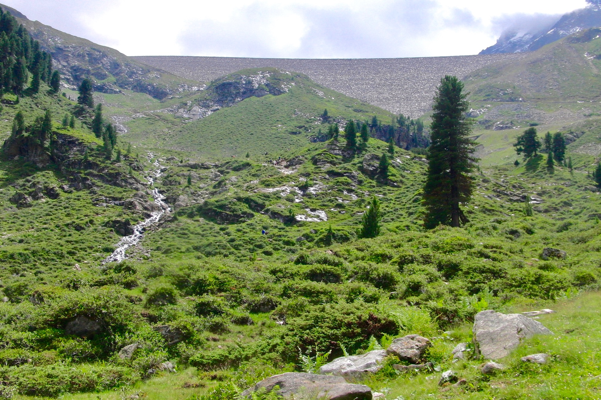 Uns zieht es bei unserer Mehrtagestour in die Natur, in die Berge und so starten wir mit Sack und Pack von Kühtai gen Süden und lassen die Zivilisation doch noch nicht ganz hinter uns. Bis zum Finstertalspeicher, etwa 300 Höhenmeter über Kühtai gelegen, kreuzen wir immer wieder eine breite Fahrstraße, durchqueren Tunnel. Zu seiner Eröffnung Anfang der 80er Jahre war der Speicher mit seinem Kraftwerk das leistungsstärkste Pumpspeicherkraftwerk in Europa und liefert noch heute Strom für zehntausende Haushalte.