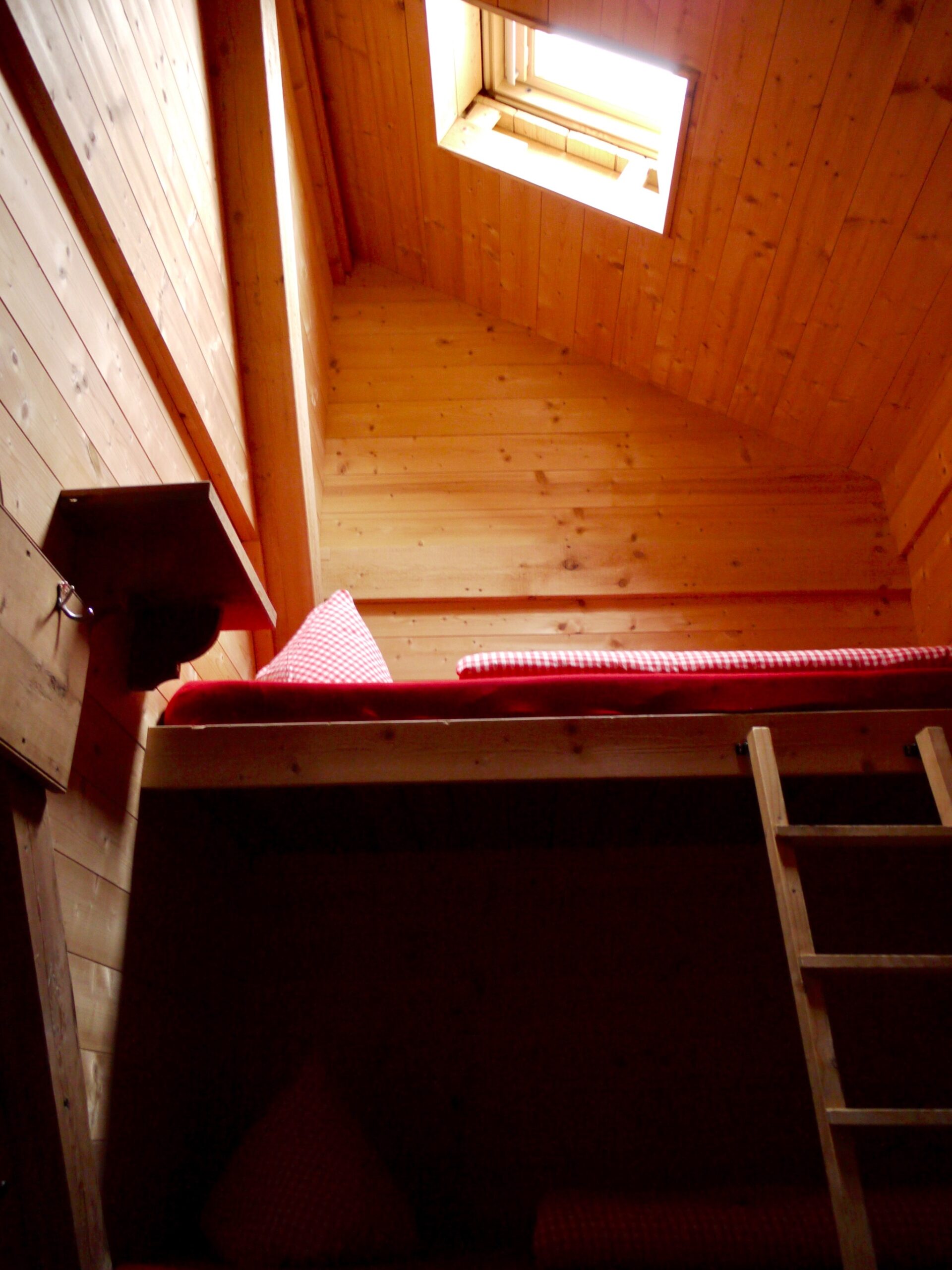 In der Hütte erwartet uns ein wahres Tollhaus. Eine Gruppe aus Holland übertönt die restlichen Wanderer und Bergsteiger, proppevoll ist es obendrein und wir haben nicht reserviert. Und trotzdem Glück: Ein Zweibett-Zimmer ist frei und spendiert einen der schönsten Schlafplätze, die wir je auf Alpenvereinshütten serviert bekommen haben, nämlich direkt unter einem Dachfenster, das zwar keinen Blick auf die Sterne bietet (sonst sicher schon), aber auf dem man genüsslich dem Regen zuschauen kann wie er auf die Scheibe tröpfelt.