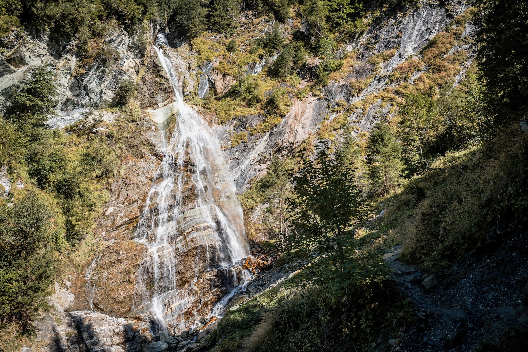 Bald plätschern die ersten Bachläufe zu beiden Seiten des Weges und es beginnt nun langsam zäher zu werden. Der Abstieg zehrt an den Kräften, zumal der unterhalb der kleinen Jagdhütte auch noch einmal deutlich anspruchsvoller wird. Nach einer wahren Sturzflut im Sommer 2023 musste der Weg, der dem Lauf des Kolmbachs hinab zum Schödersee folgt, im oberen Bereich verlegt werden. Der verlangt nochmal volle Konzentration, zumal es anschließend im Wald immer recht nass und glitschig ist.